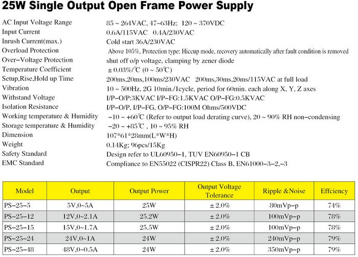 Product model:S-25 Open Frame Power Supply